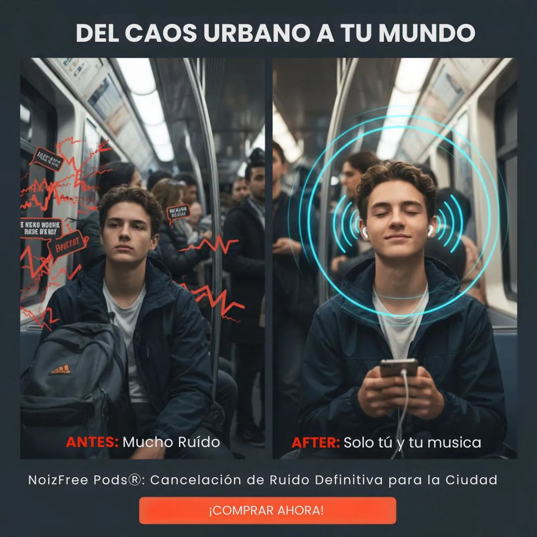 Los audífonos NoizeFree Pods® con su modo sonido ambiente/ANC configurable desde el estuche para cada entorno.