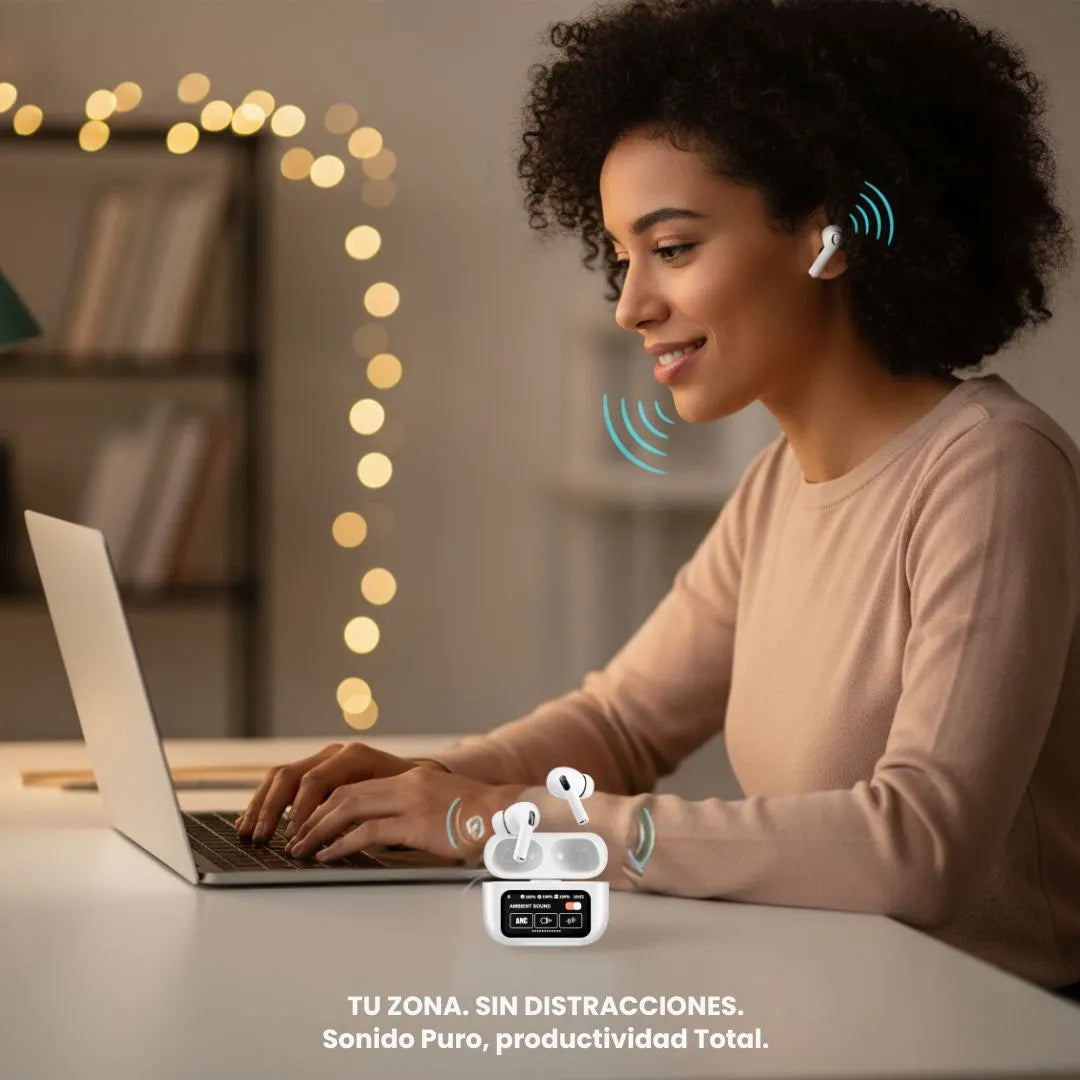 Los NoizeFree Pods® traen una pantalla táctil intuitiva, que te permite ver todas las funciones directamente.